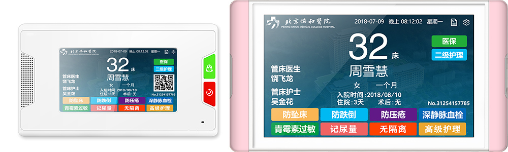 上图为新型智慧病房呼叫系统,此种呼叫系统布线方式为网线布线方式,这种呼叫系统比传统呼叫器功能更加强大,液晶屏幕显示,多种尺寸选择,并且可以通过手机APP共享信息,传输信息稳定,可以视频连线。
